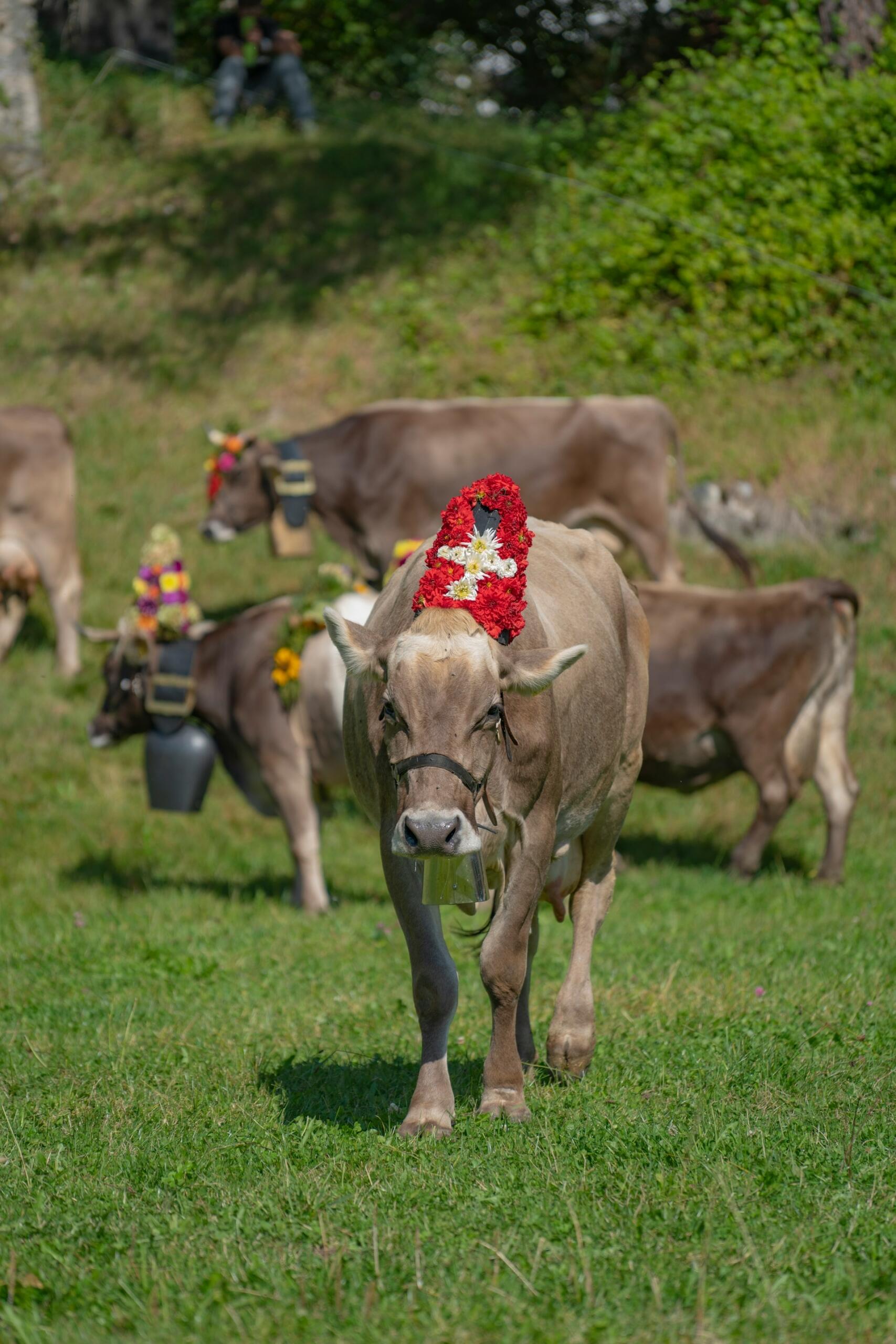 S'il y a bien un animal représentatif de la Suisse alémanique, c'est bien la vache. Sacrées, appelées d'ailleurs les "Reines", ces vaches sont décorées ! Il faut rappeler que la Suisse alémanique est réellement le cœur même des alpages et de l'élevage.